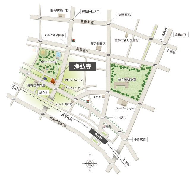 ◇お車でお越しの方◇ 圏央道青梅ICより 5分 中央道八王子ICより 25分 ※駐車場55台完備 ◇電車でお越しの方◇ JR青梅線「小作駅」東口より徒歩10分 ※タクシーワンメーター |